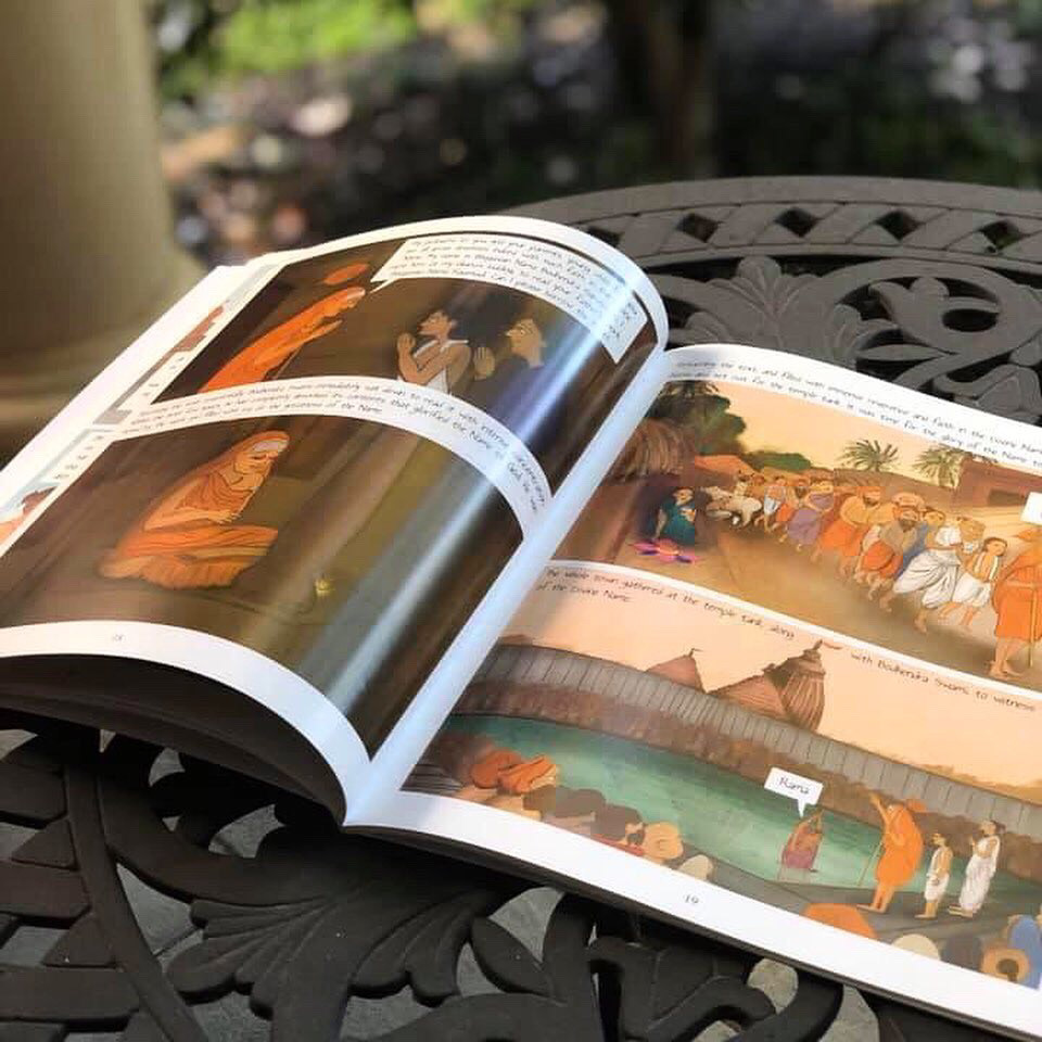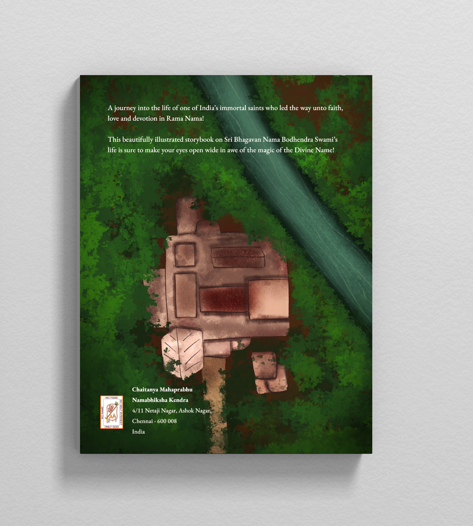 Illustration for a book on the life, work and greatness of Sri Bodhendra Saraswati Swami, 59th pontiff of the Kanchi Kamakoti Mutt, written by Nisha Sriram and Priya Murali, published by Chaitanya Mahaprabhu Nama Bhiksha Kendra, Chennai (August 2019).